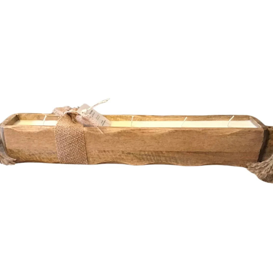 This gorgeous candle dough bowl was created and designed for our company. Mango Wood has beautiful grains throughout the wood.