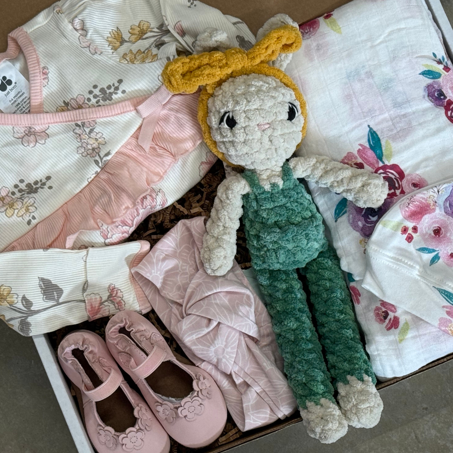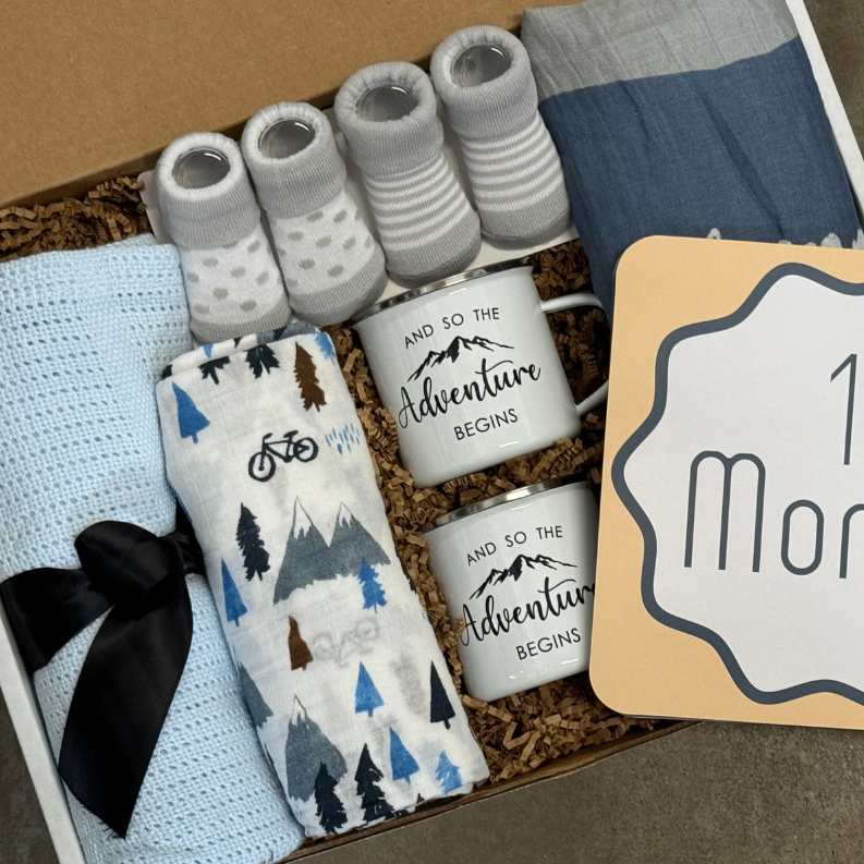 Our baby gift boxes are brimming with cozy blankets, playful teethers, gentle skincare products, and soft plushie toys – everything to comfort and entertain the little one. We also include thoughtful items for mom and dad, like soothing mama body oils or delicious treats to help them navigate those precious (and sometimes sleep-deprived) first few weeks.