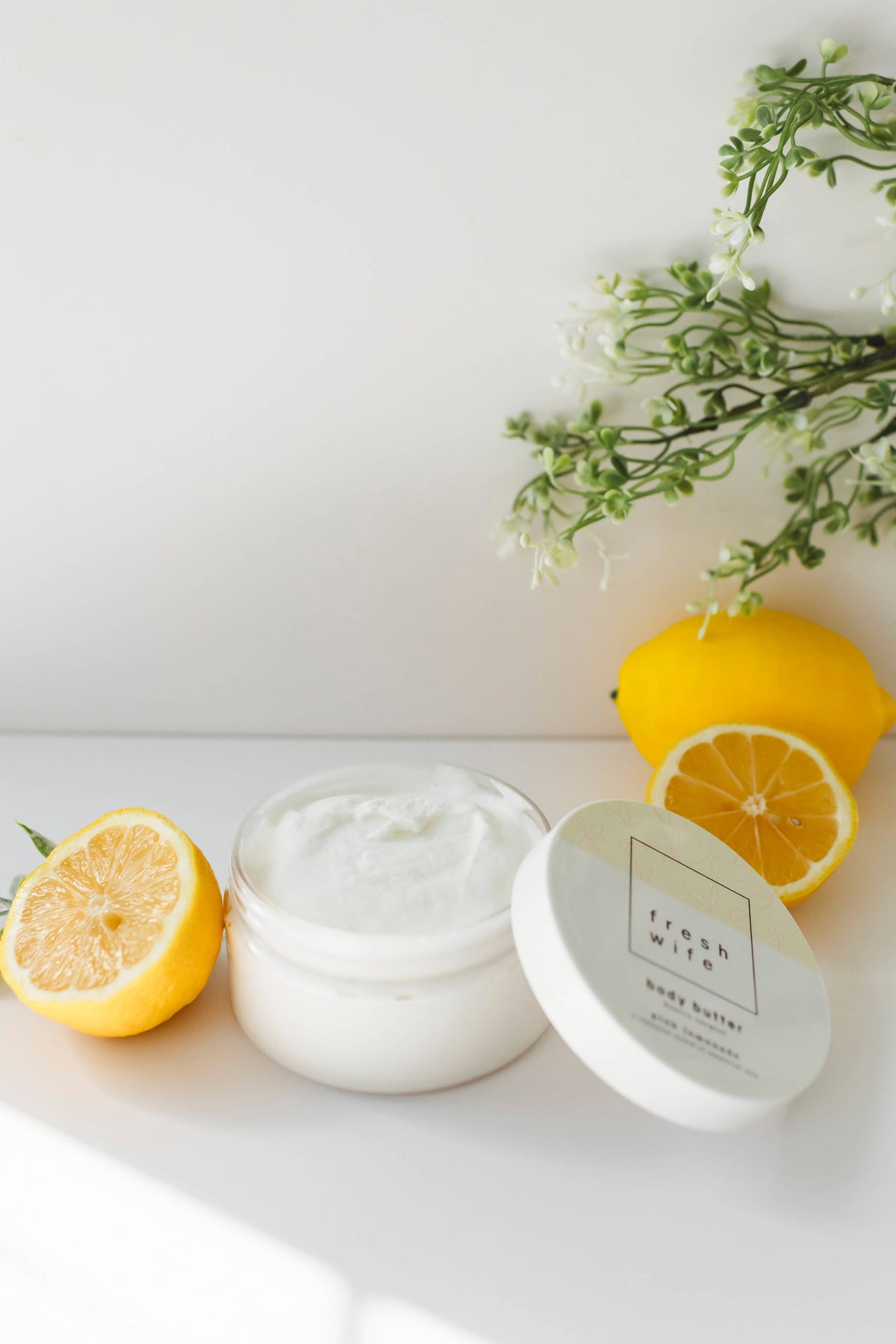 Our body butter is made with hydrating oils that are whipped into a delicate, fluffy cream that leaves your skin wonderfully silky for many hours! Perfect to apply after a shower or bath to lock that moisture onto the skin.