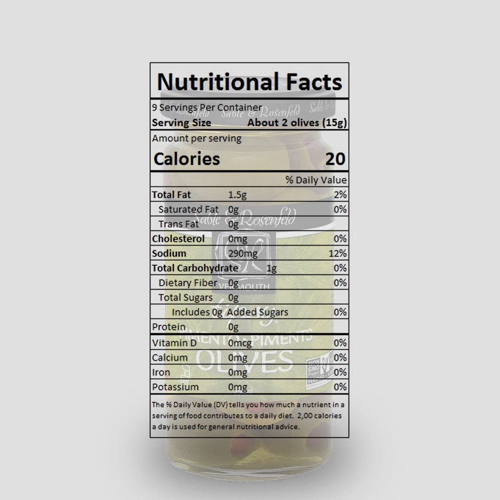 A must for the perfect Martini or just as good nibbled on their own. Tipsy Olives are bathed in French vermouth. No need to add vermouth to your martini. Colossal olives, firm and crunchy. | Kosher | Gluten-Free | Non-GMO Certified