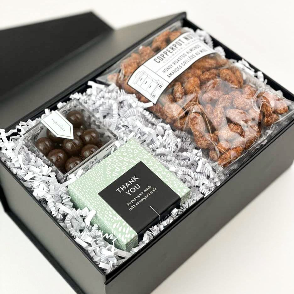Our Thank You Gift Box is the perfect way to express your gratitude! They will love the thoughtful message cards and indulgent treats.